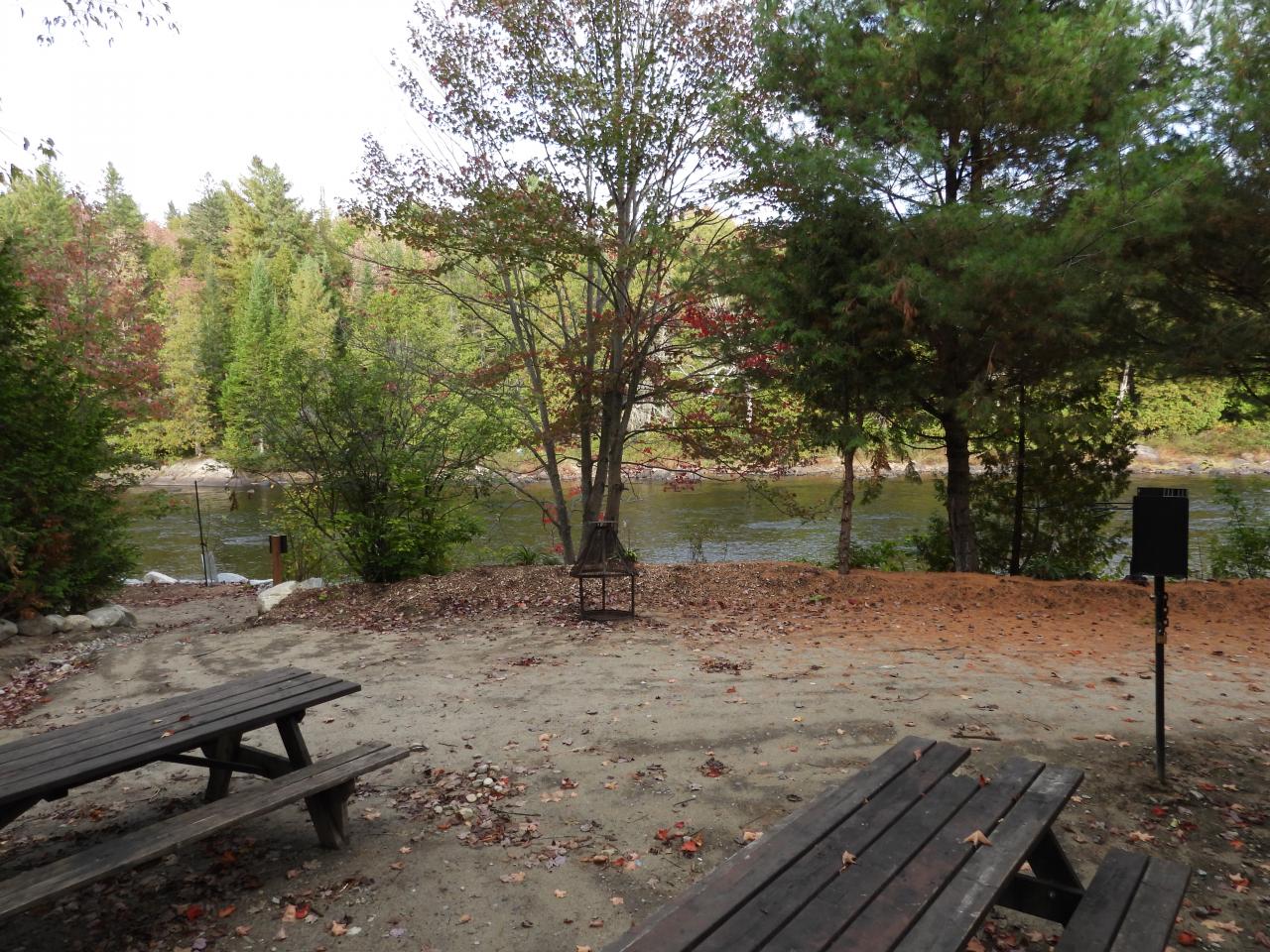 Espace de pique-nique situé directement en face de la rivière Ouareau.