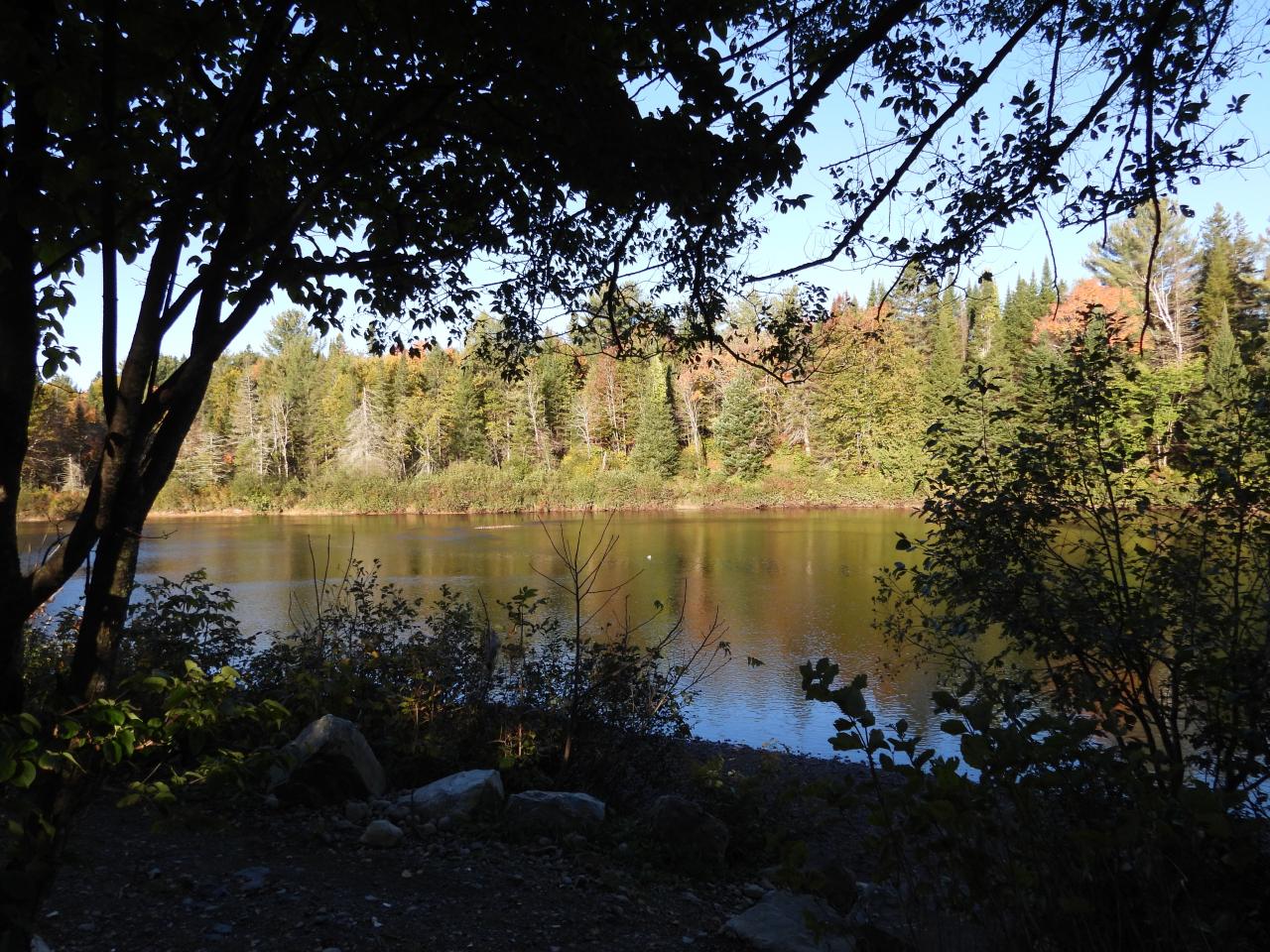 Espace de pique-nique situé directement en face de la rivière Ouareau.